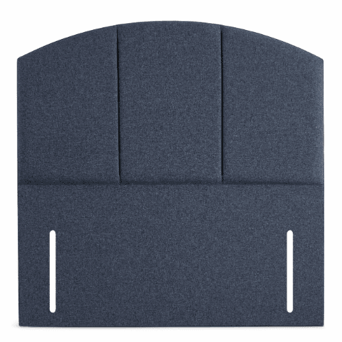 The Swanley Headboard offers a graceful and contemporary silhouette defined by its fully curved top edge, which sweeps smoothly from side to side to create a soft, elegant profile. Beneath this curved outline sit two clean vertical lines, dividing the face of the headboard into three balanced upholstered panels.